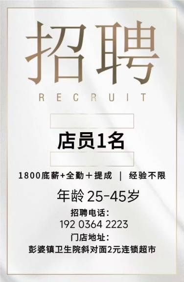 招聘职位:营业员